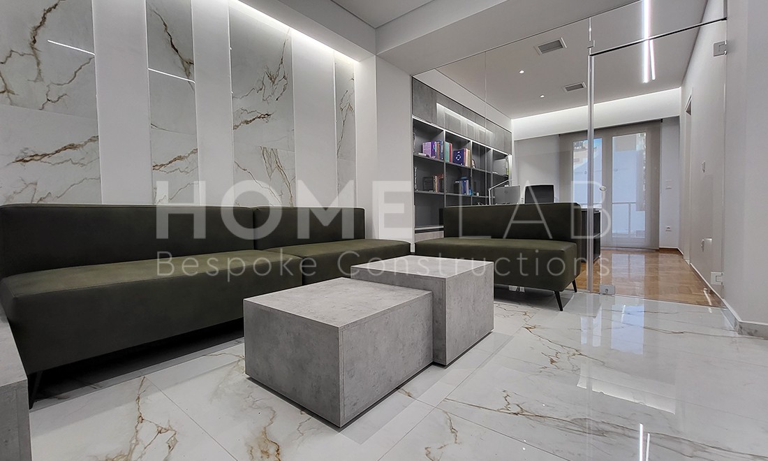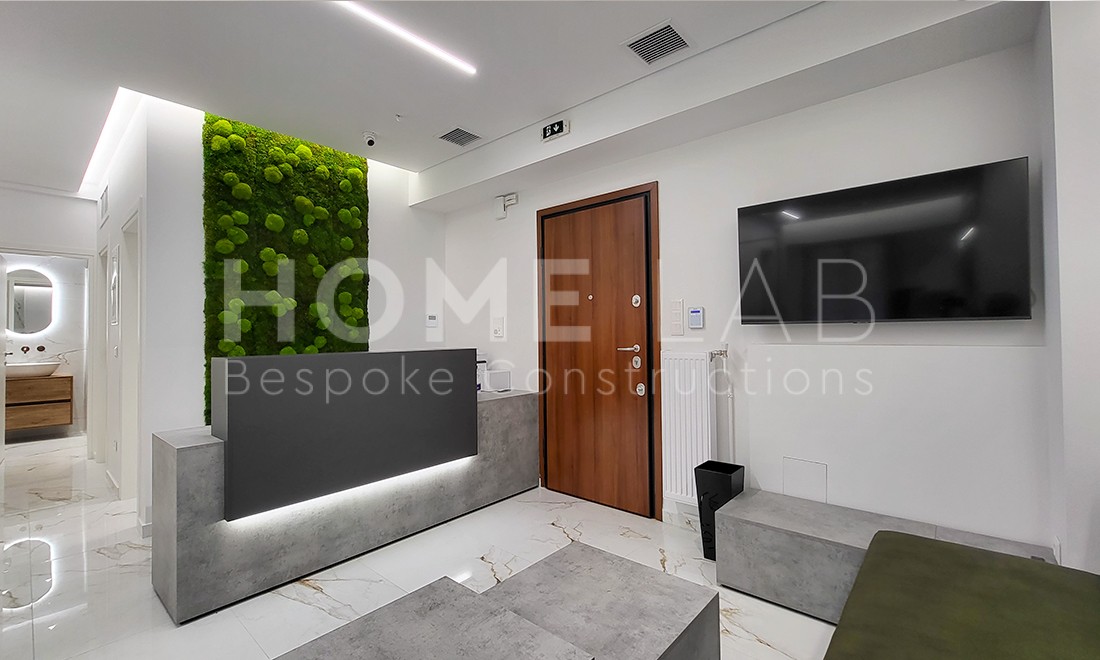 Μετατροπή διαμερίσματος σε σύγχρονο ιατρείο με χώρο υποδοχής, γραφείο, χώρο εξέτασης, μικρή κουζίνα,