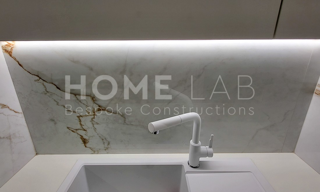 ενώ στις οροφές έχουμε γραμμικούς και κρυφούς φωτισμούς συνδέοντας το παρελθόν με το μέλλον.