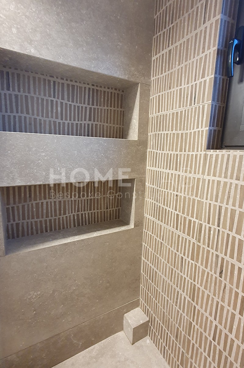 Minimal αισθητική, custom κατασκευές επίπλων, ενεργειακό τζάκι με TV unit και ποιοτικά υλικά κατασκευής.