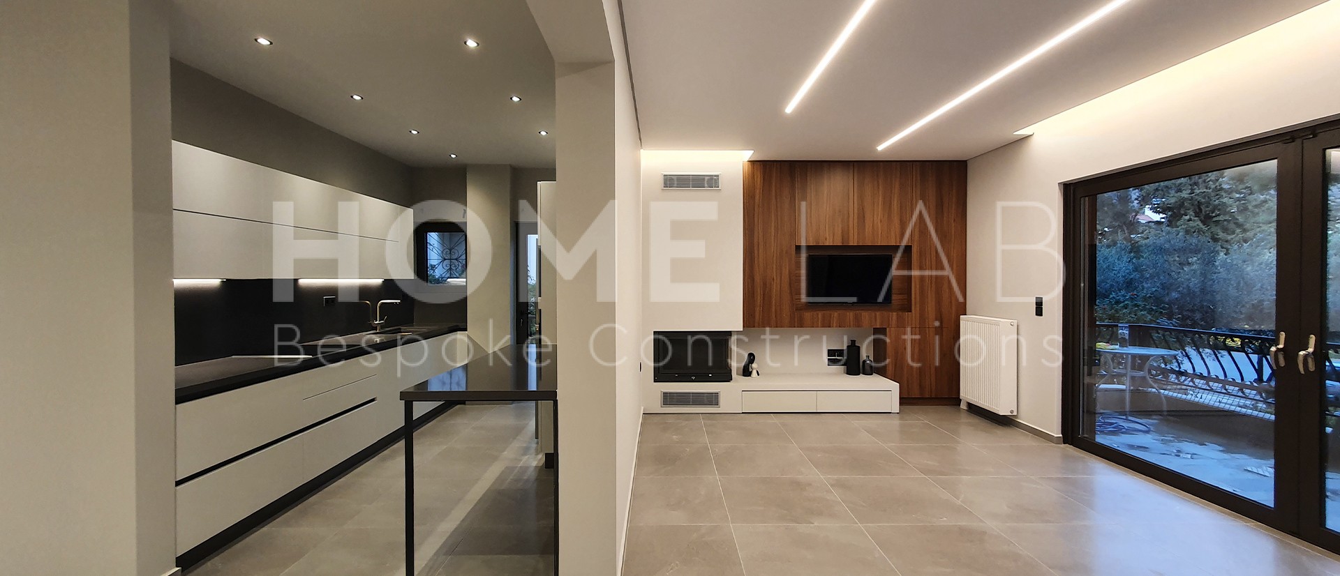 Ριζική ανακαίνιση διαμερίσματος 1ου ορόφου, 2Υ/Δ , 1μπάνιο σε πολυκατοικία στη Γλυφάδα για τις ανάγκες τριμελούς οικογένειας.
